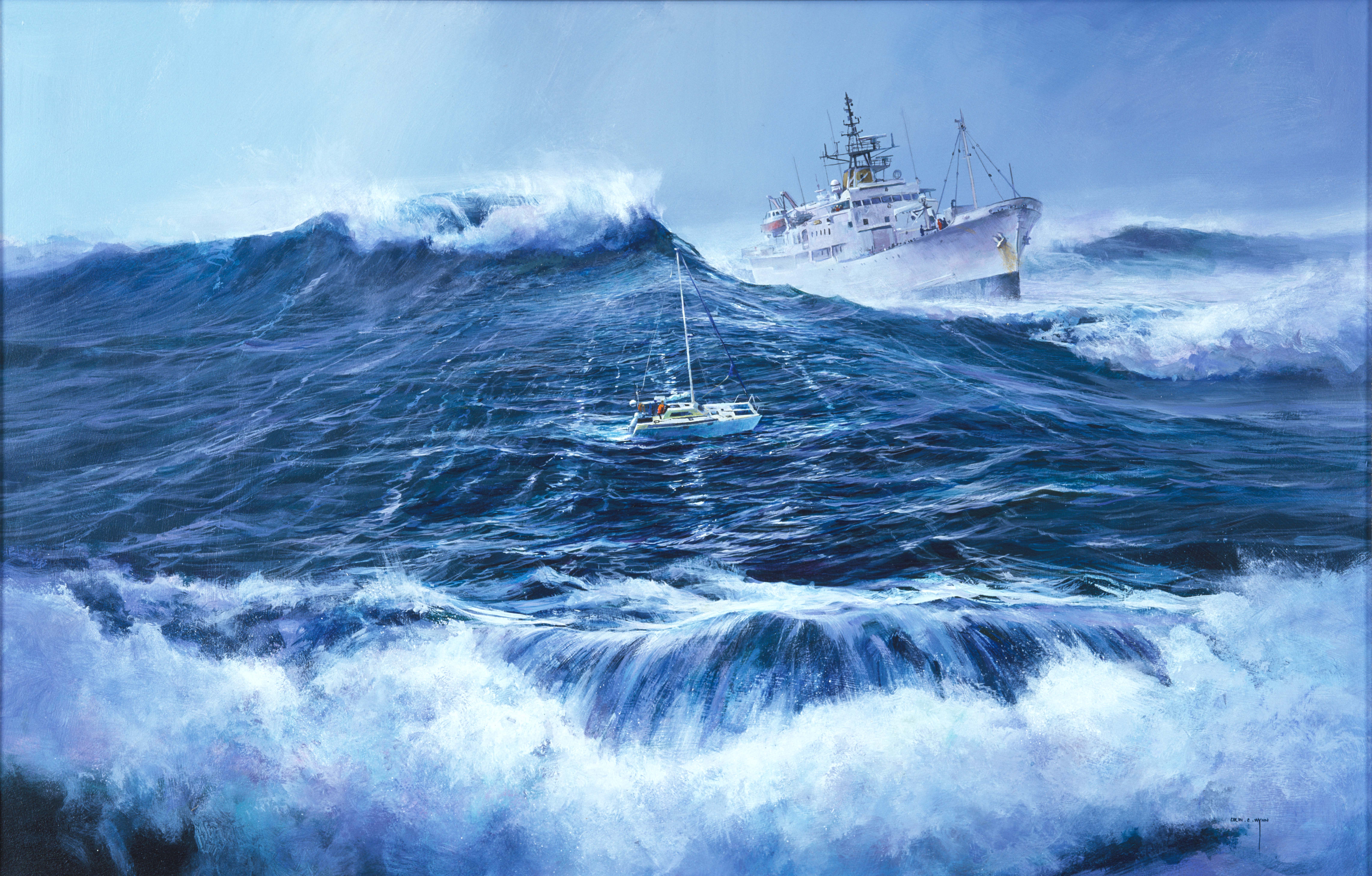 Colin Wynn became the Royal New Zealand Navy’s official artist in 1983. He was well known as one of New Zealand’s leading sea and landscape artists.