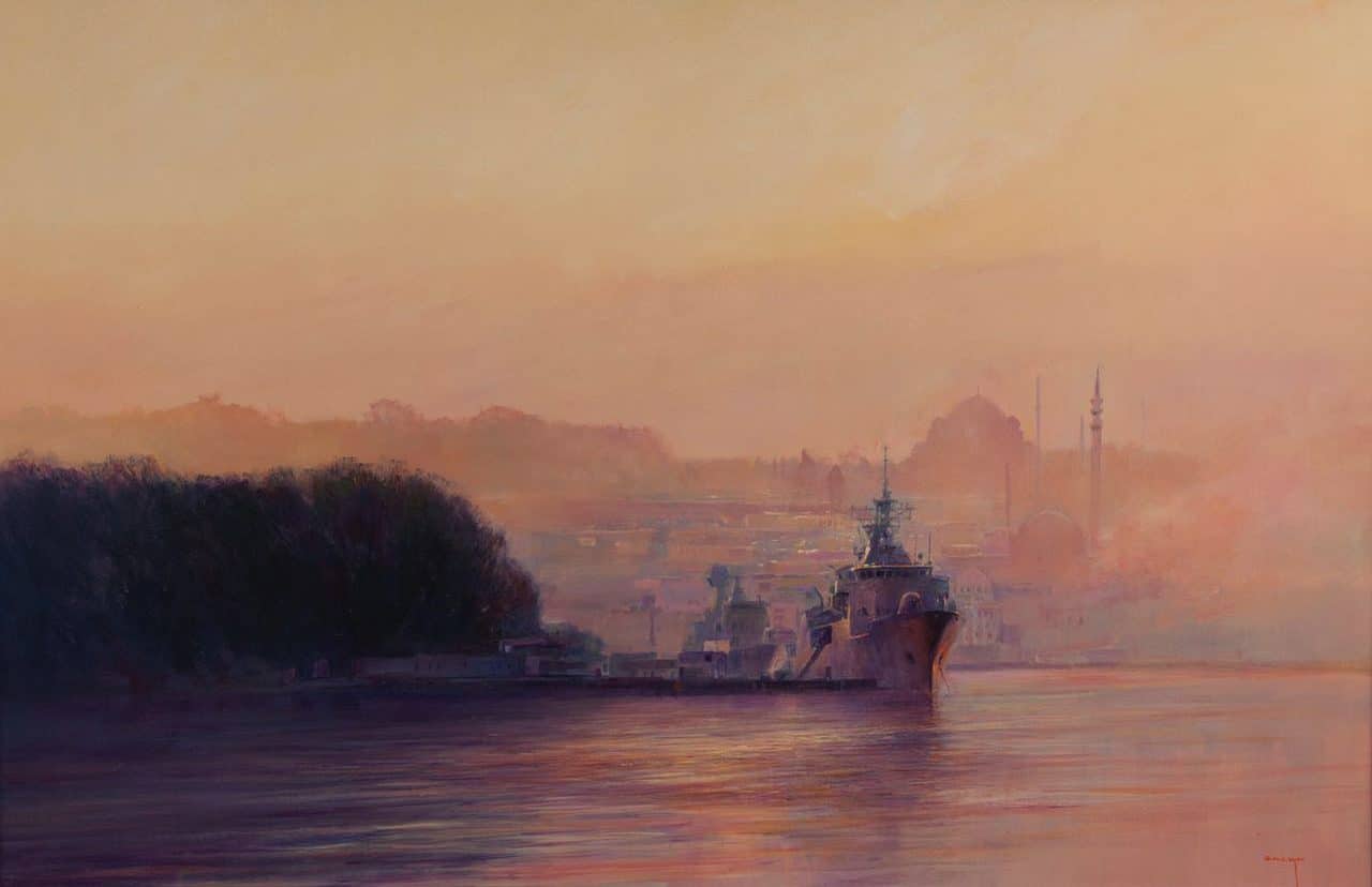He uses artistic licence in his naval works but also pays considerable attention to detail. Colin works in a variety of media, mainly oil and acrylic but also gouache, water colour or pastel as required by the subject mood or location.