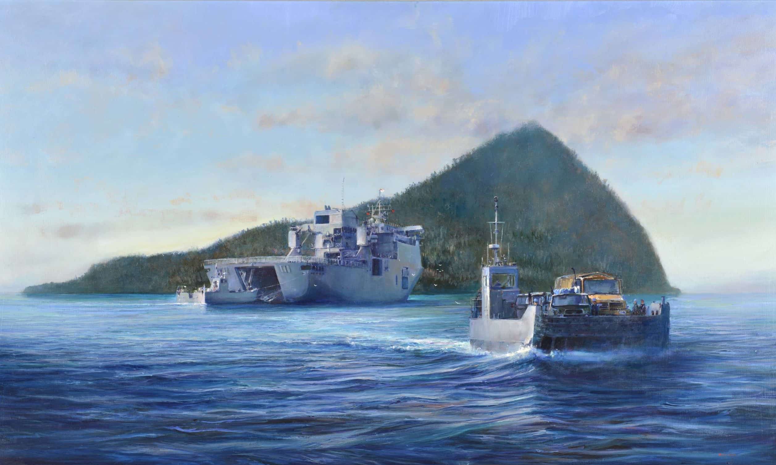 In celebration of the Royal New Zealand Navy’s 80th Anniversary in 2021 the Collections Team curated 20 artworks from the Navy’s official artist Colin Wynn. They provided a snapshot into the Royal New Zealand Navy’s varied and dynamic 80 year history.
