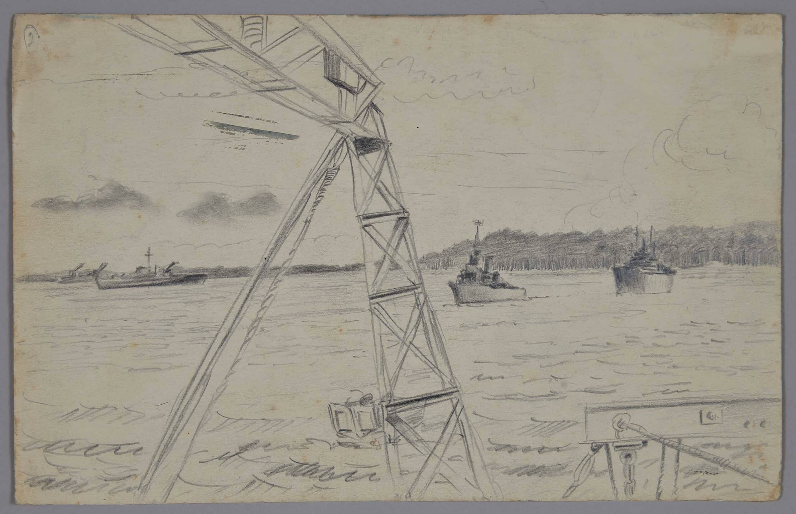 Copyright: All Rights Reserved, reproduced with the kind permission of Pamela Frost and the Estate of O.J.H. Spence. Please contact the National Museum of the Royal New Zealand Navy for permission to copy or use these images.