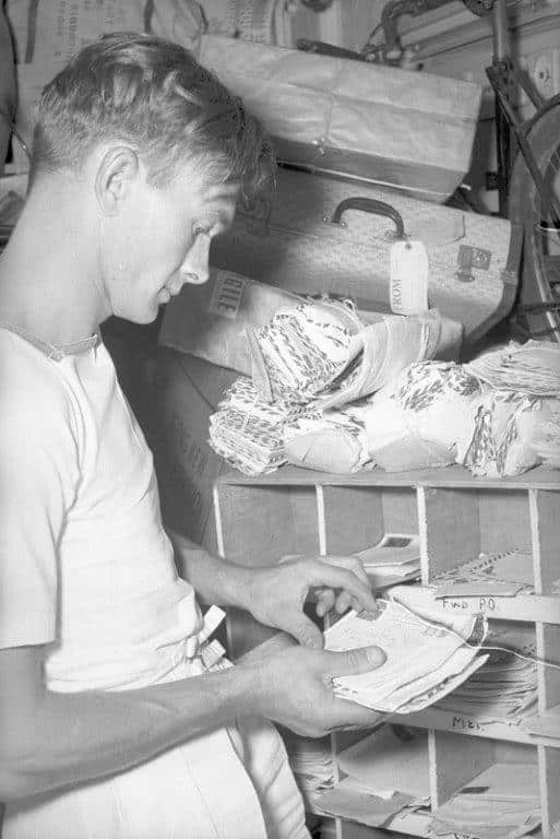 Each mess sent one representative to collect the mail and for the next thirty minutes the ship would be still and quiet, with everyone, momentarily, magically transported back home.