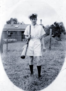 A brief stint onboard the neutral Irish ship NYME was followed by Mr Chandler volunteering for the RNZN in December 1941 and setting sail back to New Zealand. His first naval posting as part of the T124 Scheme was to TAMAKI to take charge of the canteen and kitchens. In July 1943 he was drafted to the IIes class minesweeper HMNZS SCARBA patrolling the Hauraki Gulf.