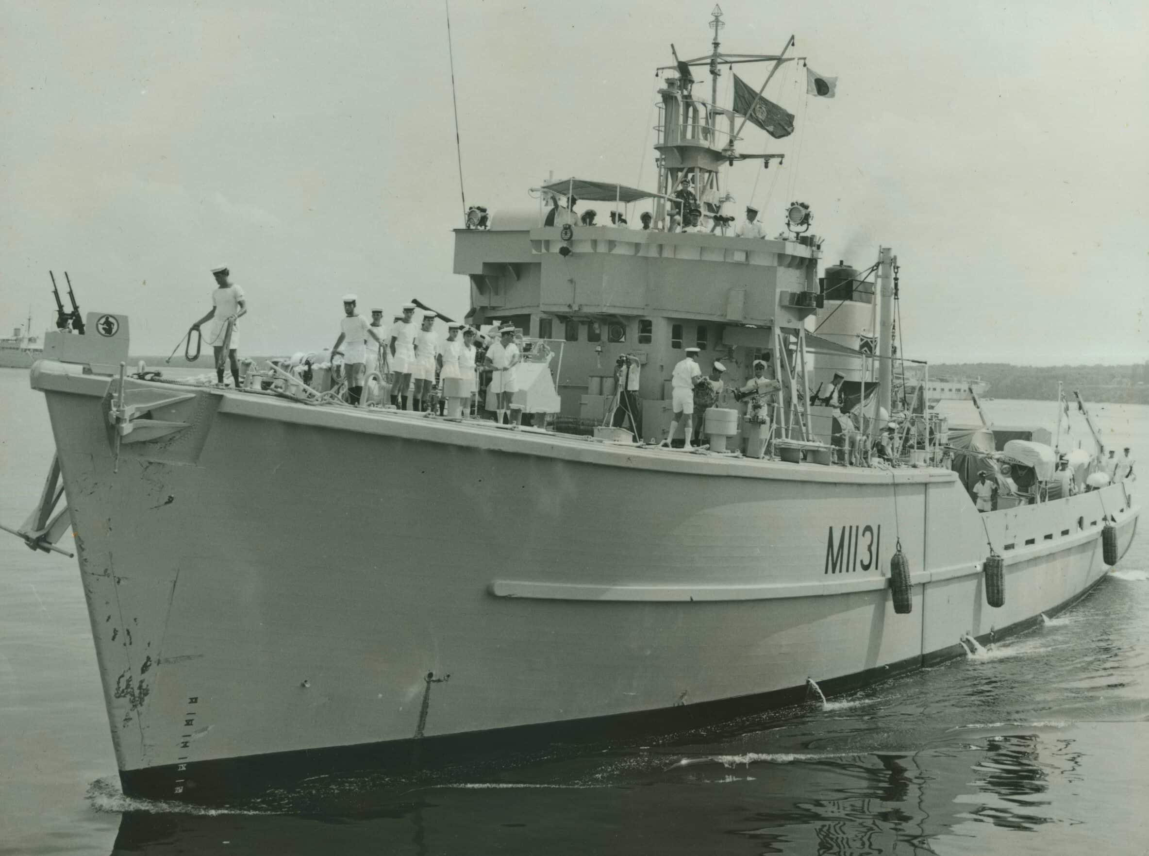In early 1965, during the Indonesian Confrontation the government of New Zealand offered military assistance to the newly formed Federation of Malaysia. The offer took the form of the RNZN manning two Royal Navy Ton-class minesweepers Hickleton and Santon then held in reserve at Singapore. They would conduct anti-infiltration patrols to counter the increasingly aggressive Indonesian actions toward Malaysia. The Royal Navy would meet the running costs of the two ships while the RNZN paid the ship’s companies. There were three rotations of ship companies for each ship during their commission.