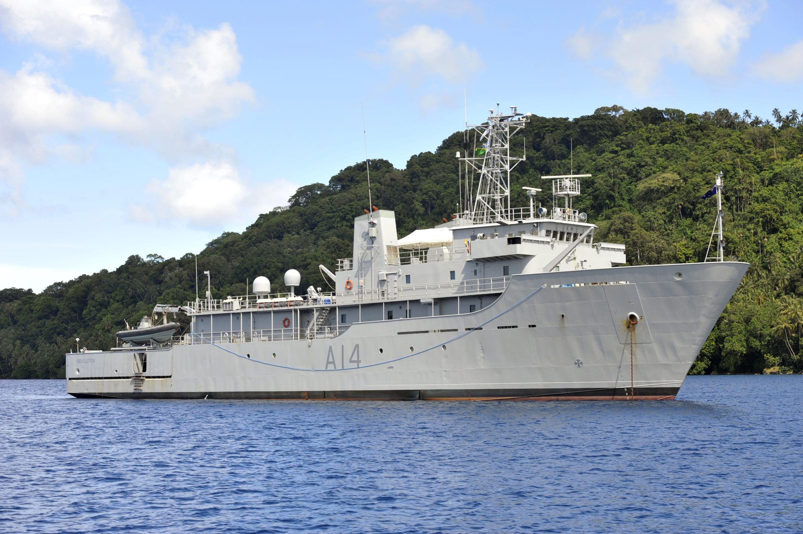 HMNZS Resolution is the tenth naval vessel to carry this name.[3] The most famous was HMS Resolution under the command of Captain James Cook that he took on his second voyage and his third ill-starred voyage. It was appropriate to use a ship’s name that reflected the significance of Cook in New Zealand’s naval heritage when the RNZN went to commission a new survey and oceanographic vessel.