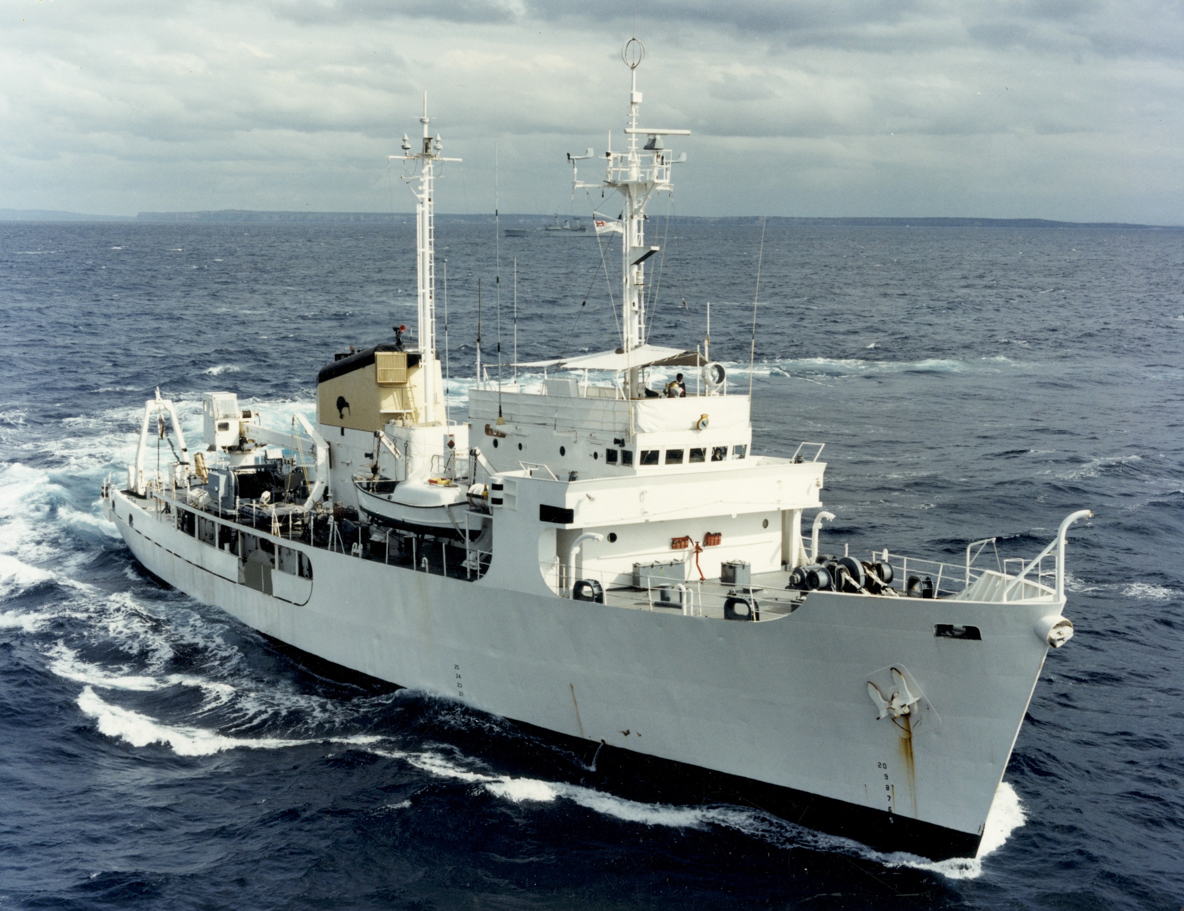 From a personal aspect, Tui was not a comfortable ship to live in. The ship’s stability and resultant motion gave frequent concern. Another notable point was the ship’s very long range, in excess of 15,000 nautical miles (27,780 km). This meant that it only had to refuel about once a year. Such a range resulted in the little-known fact that Tui had the largest fridges of any ship in the navy and could stay at sea for long periods. Nevertheless, it was a popular posting.