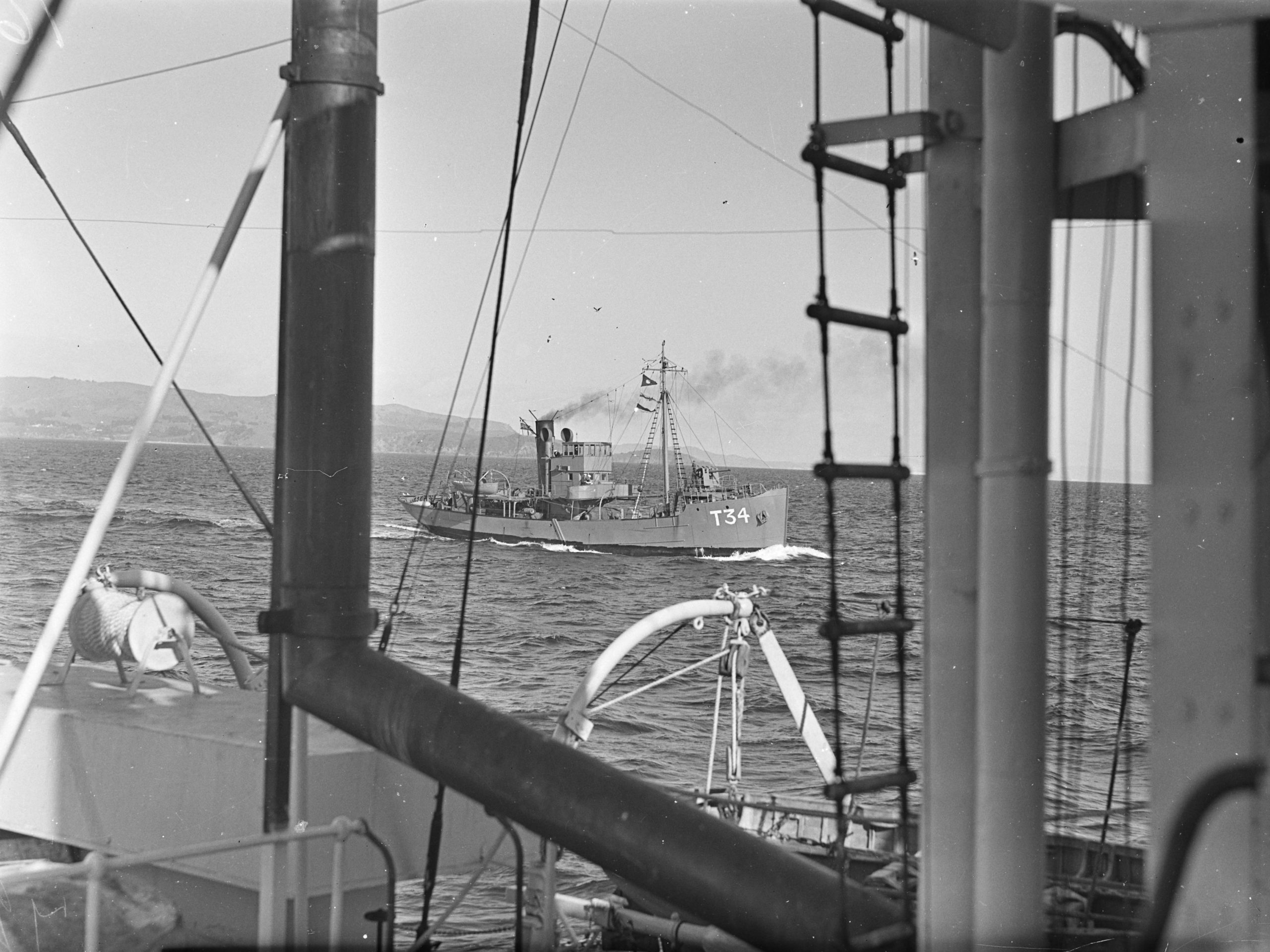 When each area was swept a row of dan buoys was laid to show the zone cleared. The last row of buoys was left to show them where to start next morning. The area was swept continually after RMS Niagara was sunk off Whangarei Heads in June 1940. It was then realised that German raiders had laid huge minefields at harbour entrances all around New Zealand and constant minesweeping to keep them clear of mines.