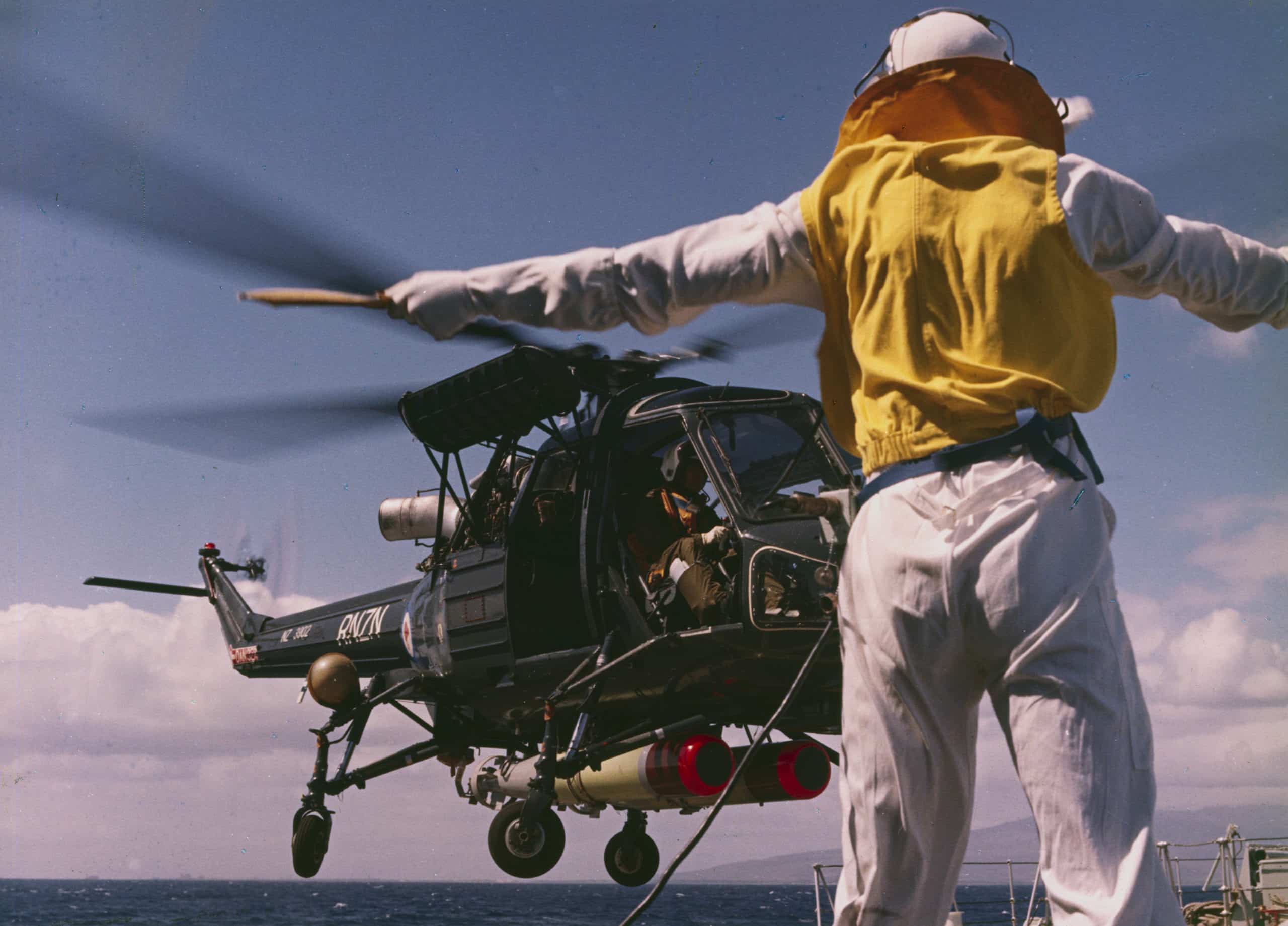 The arrival of the helicopter provided the New Zealand Naval Forces with a small air arm for the first time since Achilles and Leander’s Walrus amphibian of the 1940s.