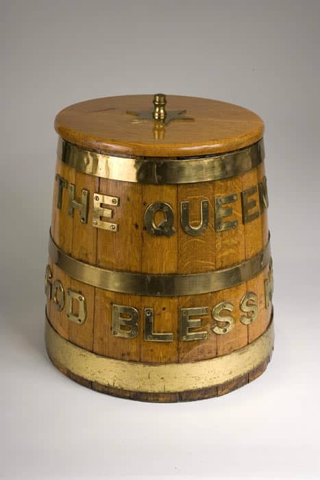 The rum now provided is not the good old fashioned navy rum. Stock was run down and the Museum holds a few bottles in its collection.