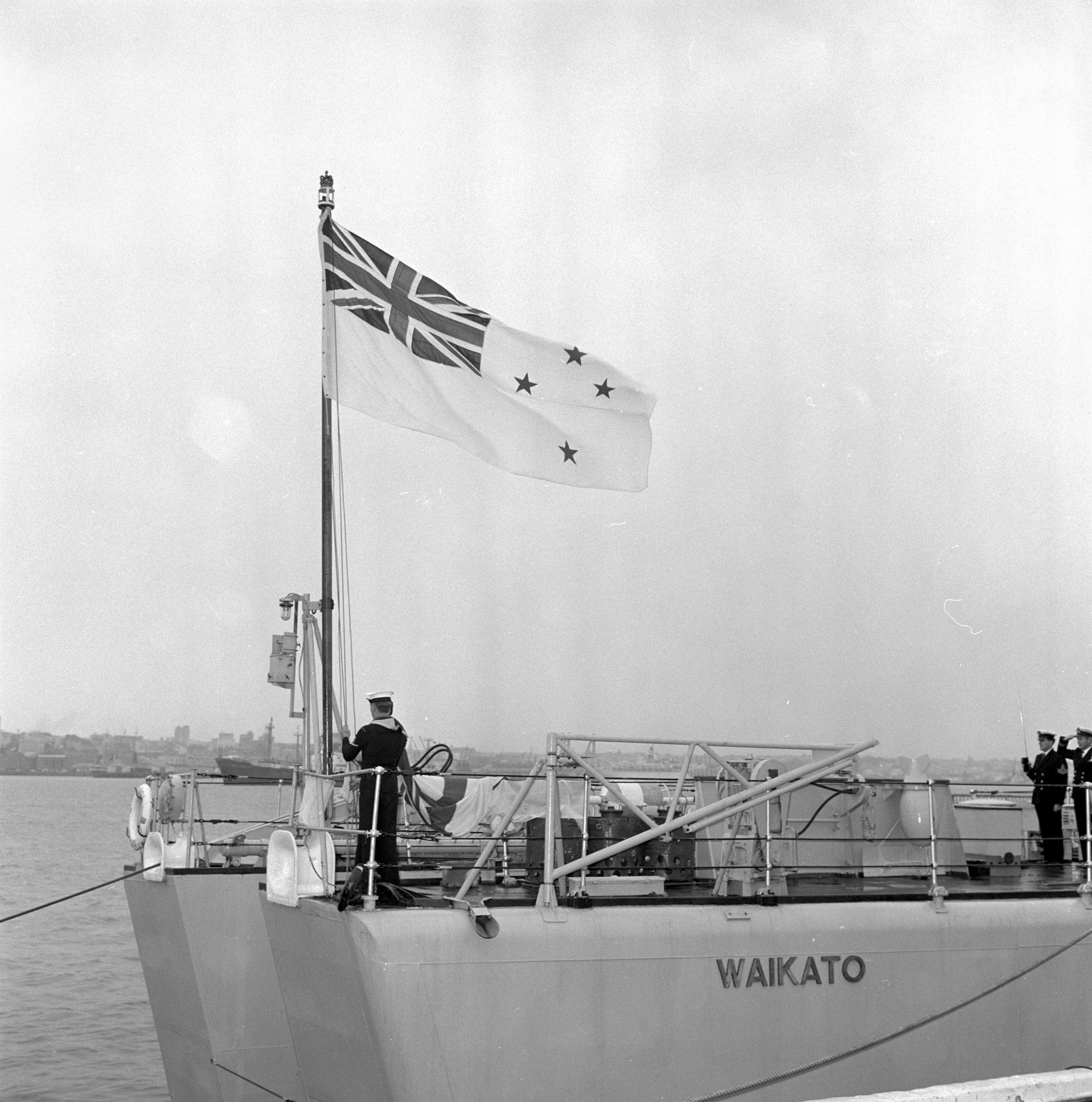 With this view, it is understandable that there was no discussion of changing ensigns at the time. Throughout the remainder of the Second World War RNZN ships fought under the White Ensign as they did in Korea and during Confrontation in Malaya.