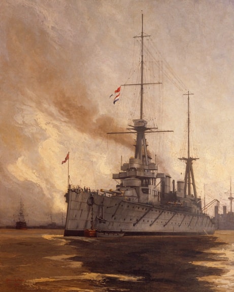 The British were formed into two squadrons, the first comprising HM Ships Lion, Tiger and Princess Royal and the second of HM Ships New Zealand and Indomitable.