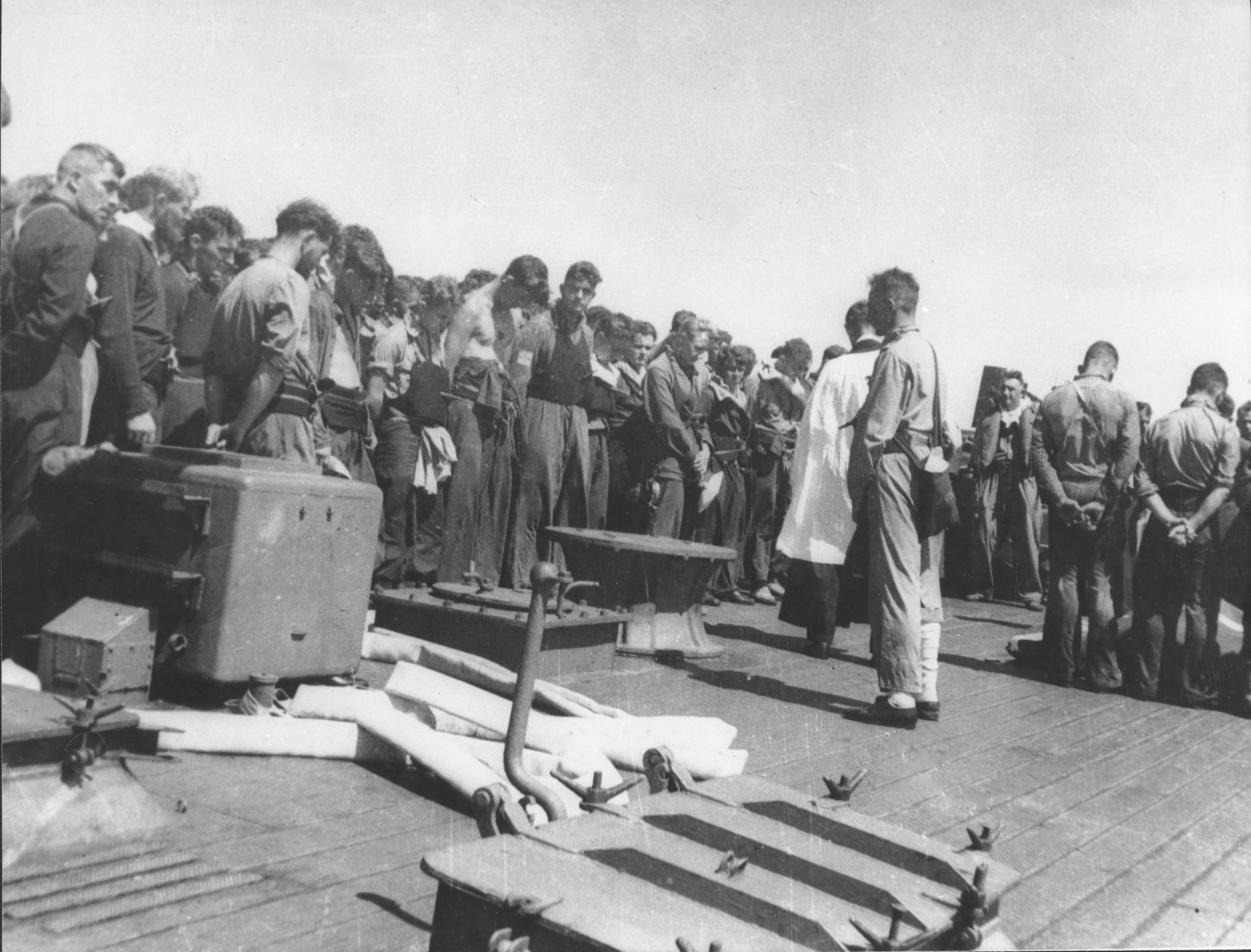 Eerily, the ship went silent as power went out and forward momentum stopped. Twenty-eight sailors were killed instantly in the explosion, most in the boiler room where the torpedo had struck. Seven men manning one of the antiaircraft guns were blown overboard by a plume of water forced up through a vent. Unfortunately the ship had travelled some distance before it was realised that they were lost overboard. A further fifteen men were injured in the attack.