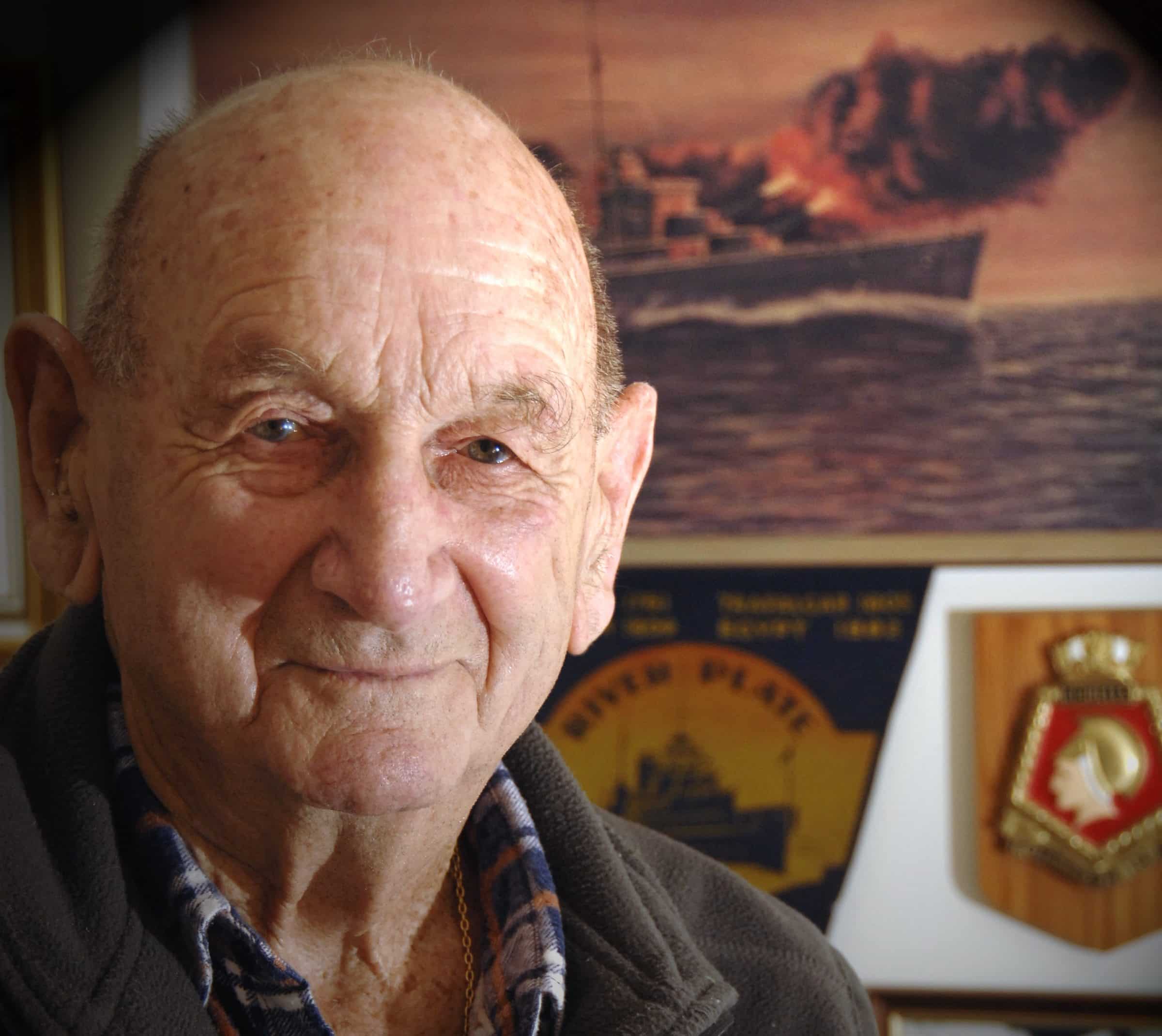 In January 1938, he rejoined Achilles as an Able Seaman. He was serving in her when in August of 1939 she was posted overseas as tensions rose in Europe and was on the South American Station when war broke out in September 1939. Vince was part of the ship’s company that fought at the Battle of the River Plate on 13 December 1939. HMS Achilles along with HMS Ajax and Exeter were involved in a battle with the German armoured ship (panzerschiff) Admiral Graf Spee. Vince was in the four-inch director control tower on the Achilles during the battle. Vince remembers, “being just four feet away from the 6 inch director Control Tower where three men were killed and three more wounded during the battle”. He remained with the ship when she returned in triumph to New Zealand February 1940. In the months following her return from South America Achilles was primarily employed on escort duties around New Zealand and in the immediate South Pacific. During this time she had several near encounters with German Raiders.