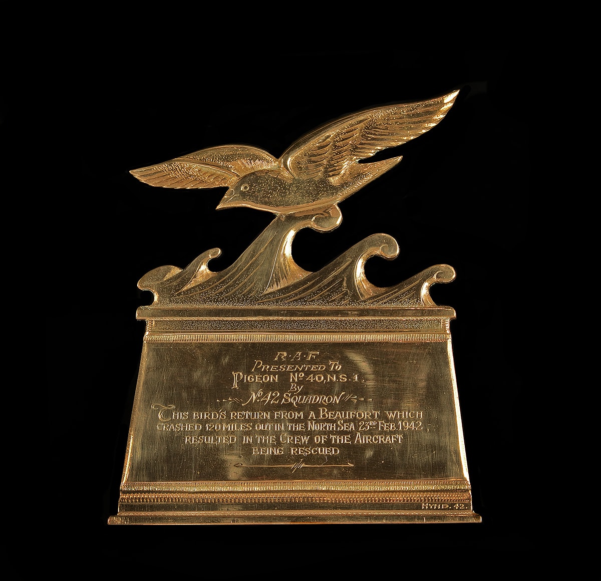 Homing pigeons are known for finding their way home, even if they are far away. That is why they were put on planes by the British Royal Air Force during the Second World War. If the plane went down the pigeon would fly home and this would let people know that the plane was in trouble. In February 1942 she was on a plane called a Beaufort Bomber, when it was shot down and landed in the freezing cold waters of the North Sea off the coast of Scotland. The plane was destroyed, but the crew scrambled onto the life boat. Luckily they were able to release Winkie from her cage.