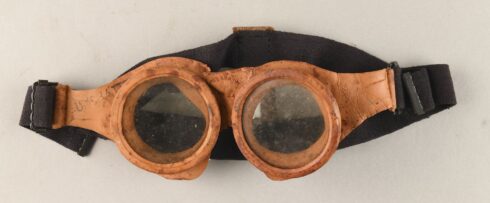 Temporary Sub Lieutenant RNZNVR Clifford Ward’s diving goggles. He was posted to HMS Varbel, a Second World War Royal Navy base in Scotland dedicated to the training of personnel posted to the 12th Submarine Flotilla. Between June 1944 and April 1945 Ward was involved the towing of midget submarines, vessels which were usually crewed by four or five men, as part of a programme of testing and drills.